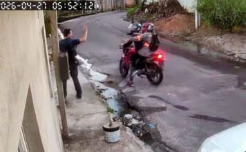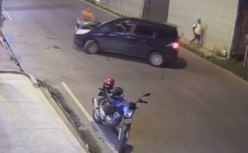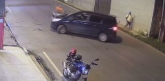 Câmeras de segurança flagraram um acidente entre um carro e uma motocicleta na madrugada desta sexta-feira (24), na Avenida Praia da Ponta Negra, no...