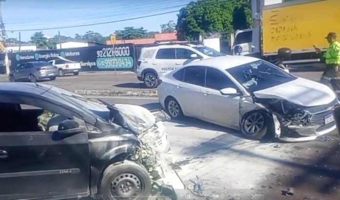 Um acidente grave entre dois veículos travou o trânsito na manhã desta segunda-feira (27), na Avenida Ephigênio Salles, no Aleixo, na Zona Centro-Sul de Manaus.