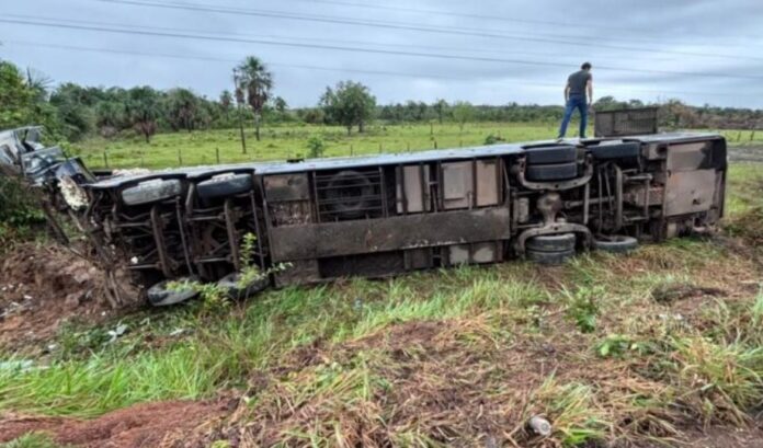 Um acidente envolvendo um ônibus deixou o motorista ferido na madrugada desta quarta-feira (8), no km 50 da BR-174, nas proximidades de Caracaraí.