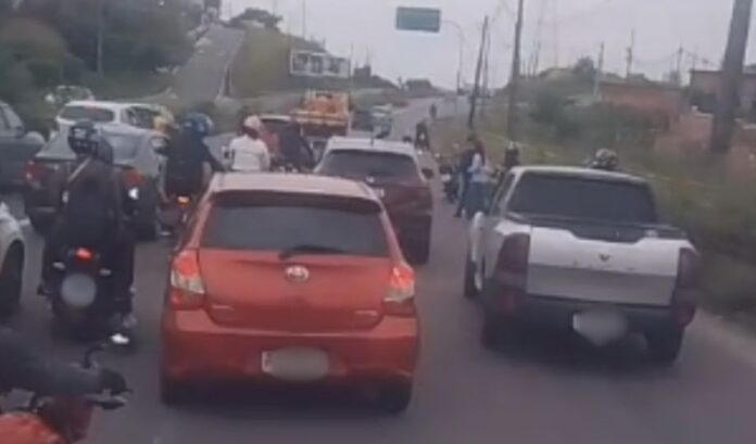 Um acidente de trânsito envolvendo um carro e uma motocicleta chamou a atenção de motoristas na manhã desta sexta-feira (20), na Avenida das Flores, no Nova Cidade, Zona Norte de Manaus. Apesar do impacto, não houve registro de feridos graves.