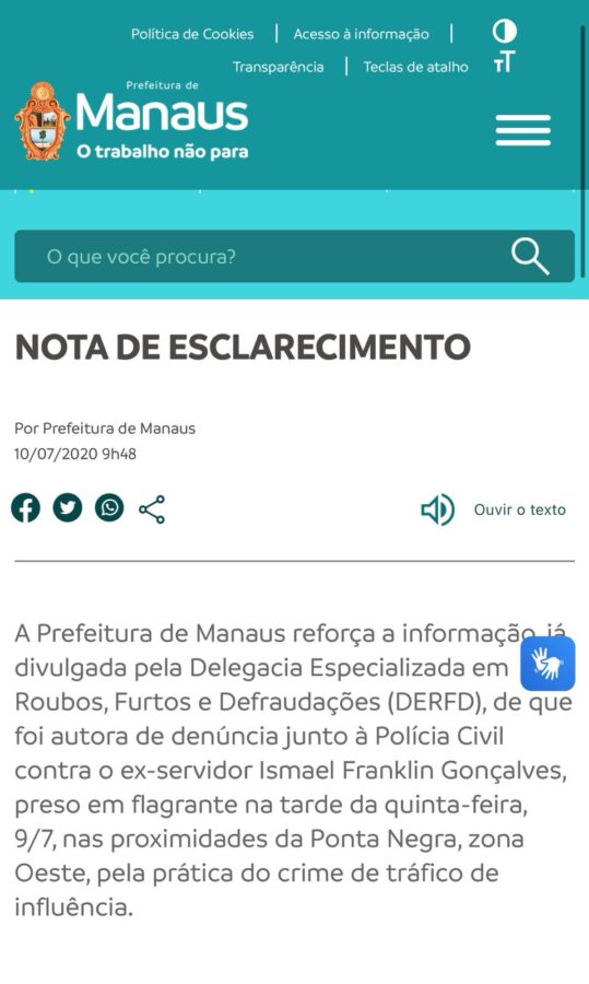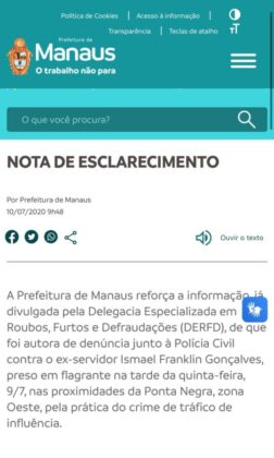 Na ocasião, a própria Prefeitura de Manaus formalizou a denúncia, conforme consta em nota divulgada em julho de 2020. A administração afirmou que a denúncia partiu de uma testemunha que se apresentou diretamente ao órgão e, seguindo o protocolo legal, o caso foi encaminhado à Polícia Civil.