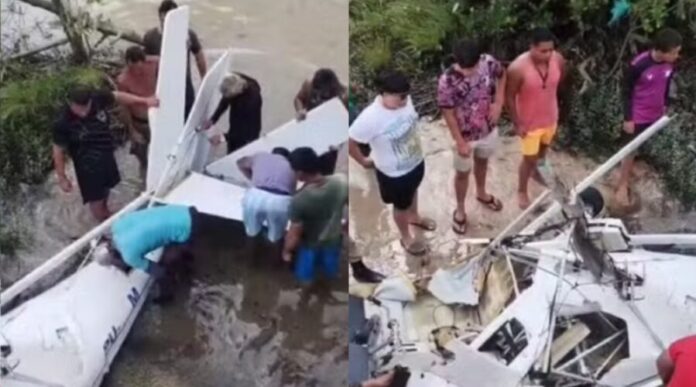 Equipes do Corpo de Bombeiros foram acionadas para o local e atuaram no resgate do avião, que foi retirado do rio e deixado na faixa de areia da praia Camboinha, também na ilha.