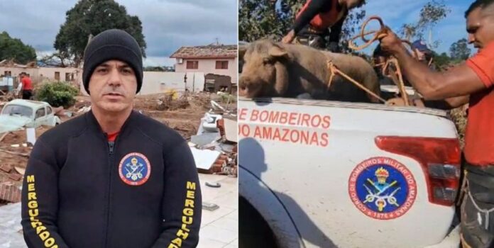 “Estamos no município de Estrela, na região do Vale do Taquari, onde ainda há pessoas desaparecidas. O Corpo de Bombeiros do Amazonas, junto com outras corporações, vem realizando ações de busca e salvamento, além de trabalhos humanitários, como a entrega de alimentos, remédios e a retirada de vítimas das enchentes”, relatou o tenente Rodolpho Carepa, comandante da tropa do Amazonas no RS.