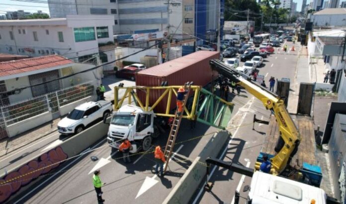 Devido ao incidente, o tráfego na área está interrompido para a remoção da carreta, e agentes do IMMU estão orientando os motoristas sobre rotas alternativas para manter a fluidez do trânsito. Paralelamente, a Secretaria Municipal de Infraestrutura (Seminf) mobilizou um caminhão munck e uma equipe de serralheiros para realizar os reparos necessários no local.