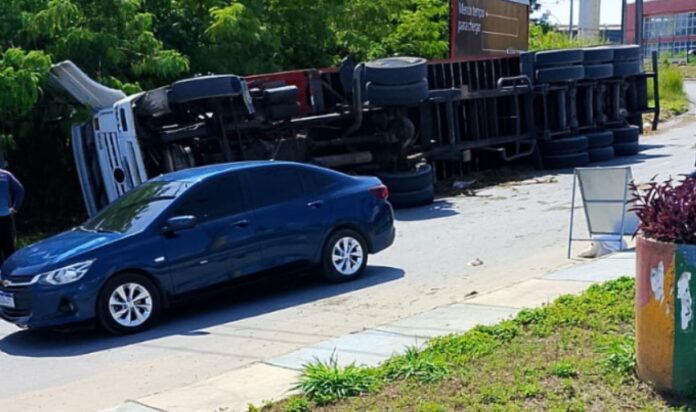 Uma carreta de grande porte tombou na manhã desta segunda-feira (26), na Estrada da Colônia Antônio Aleixo, Zona Leste de Manaus, deixando parte da pista interditada e provocando lentidão no trânsito da região. O acidente ocorreu em frente ao Centro do Alumínio e, até o momento, não há registro de feridos.