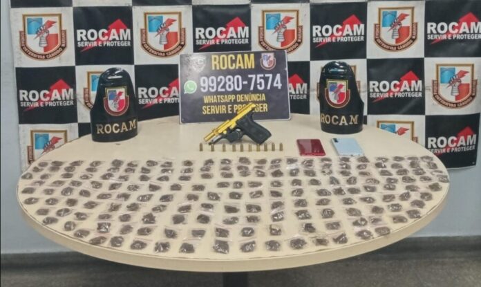 Policiais das Rondas Ostensivas Cândido Mariano (ROCAM), vinculadas à Polícia Militar do Amazonas (PM-AM), receberam a informação de que um indivíduo estaria armado e vendendo entorpecentes na rua Chuva Branca. Durante o patrulhamento, a equipe localizou o suspeito, que tentou fugir, mas acabou alcançado.
