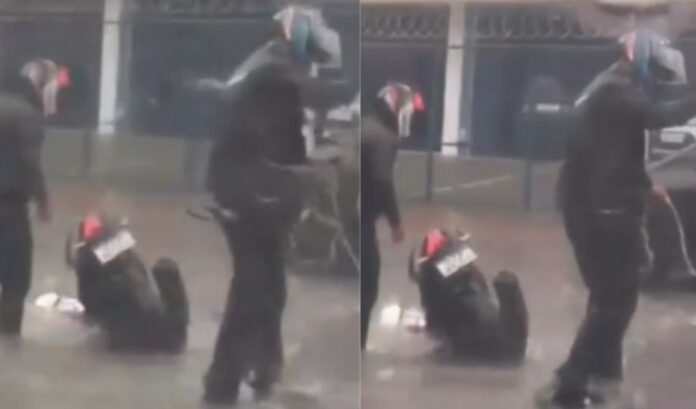 Um motociclista sofreu um acidente após cair em um buraco durante a forte chuva registrada na manhã desta quinta-feira (12) em Manaus. A ocorrência foi registrada na esquina da Rua Doutor Thomas com a Rua Rio Jutaí, no Nossa Senhora das Graças, na Zona Centro-Sul da capital.