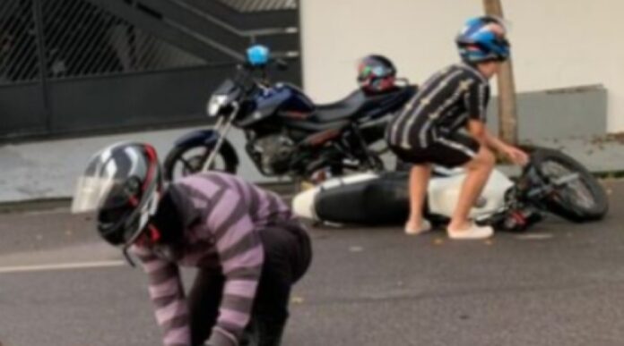 Um acidente de trânsito deixou um motociclista e a passageira feridos, na manhã desta segunda-feira (11), na Avenida Dublim, no Planalto, Zona Centro-Oeste de Manaus.