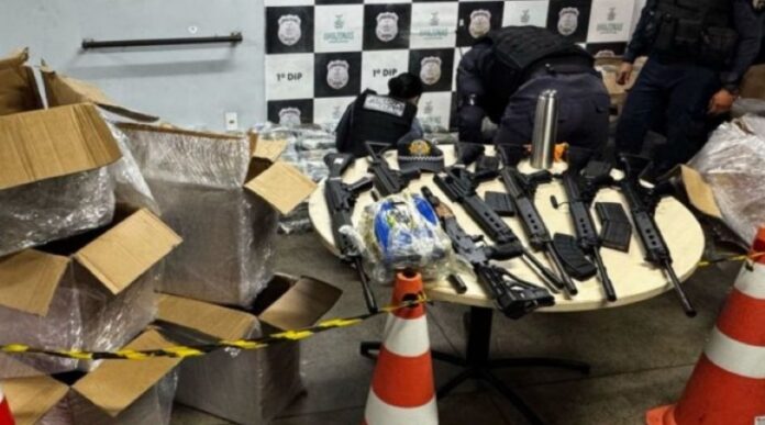 Todo o material recolhido será submetido à perícia. As autoridades ainda não divulgaram o número exato de armas nem o volume de entorpecentes localizados. A lancha também foi apreendida e passará por inspeção técnica.