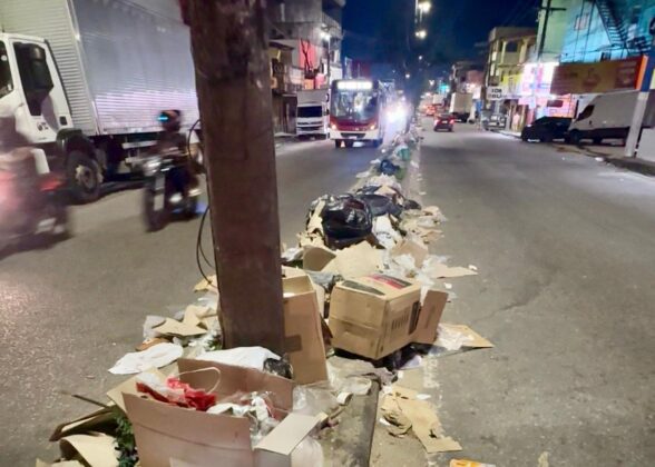 Noite de quarta-feira, 18/6, e o cenário ao passar por uma das principais vias de comércio da zona Leste de Manaus é de completo abandono, com lixo espalhado por todo canteiro central e calçadas da famosa ‘rua do Fuxico’. “É uma vergonha, a cidade está abandonada”, disse a pré-candidata ao Governo do Amazonas Professora Maria do Carmo (PL-AM) ao passar pelo local para chegar à segunda etapa do bairro Jorge Teixeira, onde esteve reunida com líderes comunitários e moradores locais.