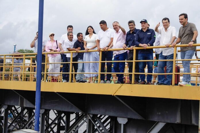 Acompanhado por Edme Tavares, diretor do Departamento Nacional de Infraestrutura de Transportes (DNIT), o senador vistoriou o Porto da Cidade, essencial para a logística durante o Festival de Parintins.