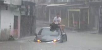 [Vídeo]: Motorista sobe em carro após ficar ilhado em alagamento em...