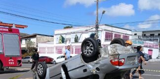 Motorista escapa com ferimentos leves após carro capotar no Flores em...