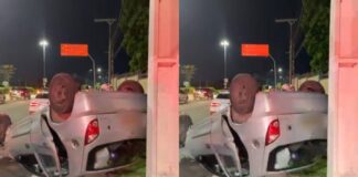 [Vídeo]: Motorista é socorrido após capotamento na Zona Oeste de Manaus