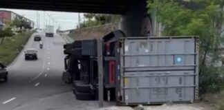 Carreta tomba na Avenida das Torres e interdita trânsito na Zona...