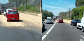 Acidente com carreta trava o trânsito e deixa pista escorregadia na...