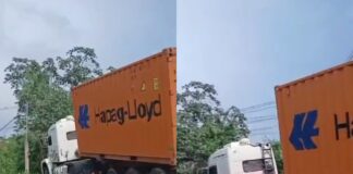 Contêiner tomba e bloqueia entrada do Porto Chibatão na Zona Sul...