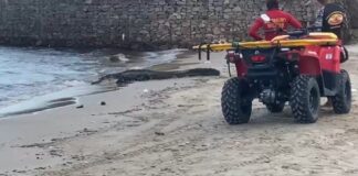 [Vídeo]: Jacaré gigante é visto na beira da praia da Ponta...