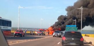 [Vídeo]: Ônibus é consumido por incêndio na Ponte do Rio Negro...