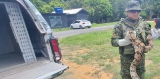 Jiboia de três metros é resgatada por equipe de limpeza no...