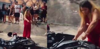 “É minha!”: mulher fura pneu de moto após flagrar suposta traição...