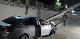 Carro colide com poste e deixa trânsito afetado na Avenida das...