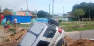 Carro é engolido por cratera aberta na Zona Norte de Manaus