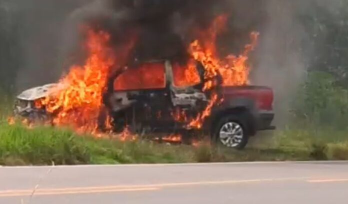 Imagens que circulam nas redes sociais mostram o momento em que o incêndio toma conta do utilitário. As chamas, altas e intensas, consumiram rapidamente a estrutura do veículo, gerando uma densa fumaça escura que pôde ser vista por motoristas que passavam pela rodovia.