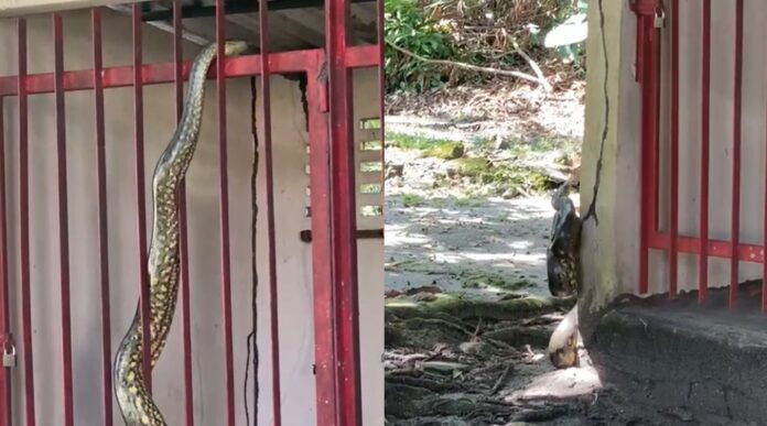 A cena inusitada foi registrada em vídeo por funcionários da secretaria, que, em tom bem-humorado, apelidaram a serpente de “Jaqueline”. Em meio às risadas, uma servidora brinca: “O nome dela é Jaqueline!”, enquanto grava o animal se deslocando lentamente pela estrutura. O vídeo rapidamente ganhou as redes sociais, despertando reações divertidas e comentários curiosos dos internautas.